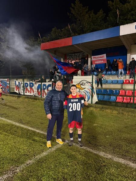 Davide Barona, festeggiato per aver raggiunto le 200 presenze con il Dubino