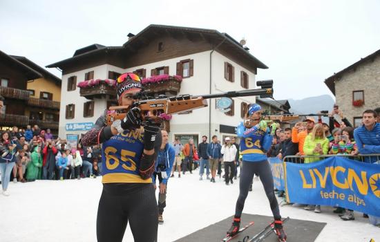 La principessa Lisa (Vittozzi) brucia la regina Dorothea (Wierer) e si aggiudica la vittoria nella prova di biathlon della 1 K Shot di Livigno.