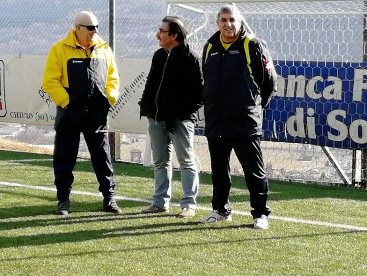 Il mister pontasco Graziano Franceschini (al centro) con il suo staff