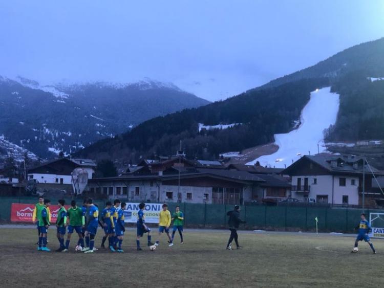 Lo Sporting Club Sondalo nel prepartita sul campo della Bormiese