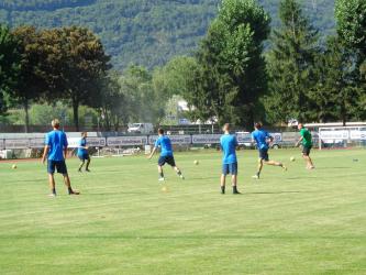 La squadra lavora agli ordini del tecnico Omar Nordi, del preparatore atletico Pietro Gatti e del preparatore dei portieri Franco Marelli, nel frattempo la dirigenza è all'opera per perfezionare l'organico e per preparare la stagione del settore giovanile. Per il Sondrio la stagione 2018-2019 è partita a pieno ritmo e stamattina abbiamo seguito l'allenamento approfittando anche per scambiare due parole con il direttore sportivo del settore giovanile Alessandro Danieli. Dopo una prima parte atletica tutti insieme, la rosa è divisa in tre gruppi, uno al lavoro sul campo in erba con Nordi, uno in palestra con Gatti e i tre portieri sul sintetico con Marelli. Tattica, atletica e lavoro specifico il menù di una caldissima mattinata nel capoluogo. Al lavoro anche Alessandro Ortelli, impegnato a massaggiare Giovanni Mostacchi che scalpita per tornare a giocare. Tra i giocatori manca per impegni lavorativi il capitano Alex Della Cristina, mentre si nota la presenza del portiere Alessio Cafagna, classe 2001, proveniente dal Bari. Sul fronte mercato potrebbero esserci a breve novità anche a centrocampo, dal Torino potrebbe arrivare un 2000 allenato da Nordi nell'under 16 granata. Mentre fuori si lavora, Danieli in sede ci illustra i programmi del settore giovanile a partire dal progetto che sta nascendo con l'Atalanta per far diventare quella sondriese una scuola calcio qualificata legata alla "Dea". Inoltre, con l'inizio dell'anno scolastico un tecnico del Sondrio terrà delle lezioni nelle scuole elementari per avvicinare i ragazzi al mondo del calcio e, sempre legato all'ambiente scolastico, si lavora per una collaborazione per il doposcuola con il Rugby Sondrio. L'inizio della stagione è imminente anche per tutte le squadre del settore giovanile, di seguito date e allenatori.