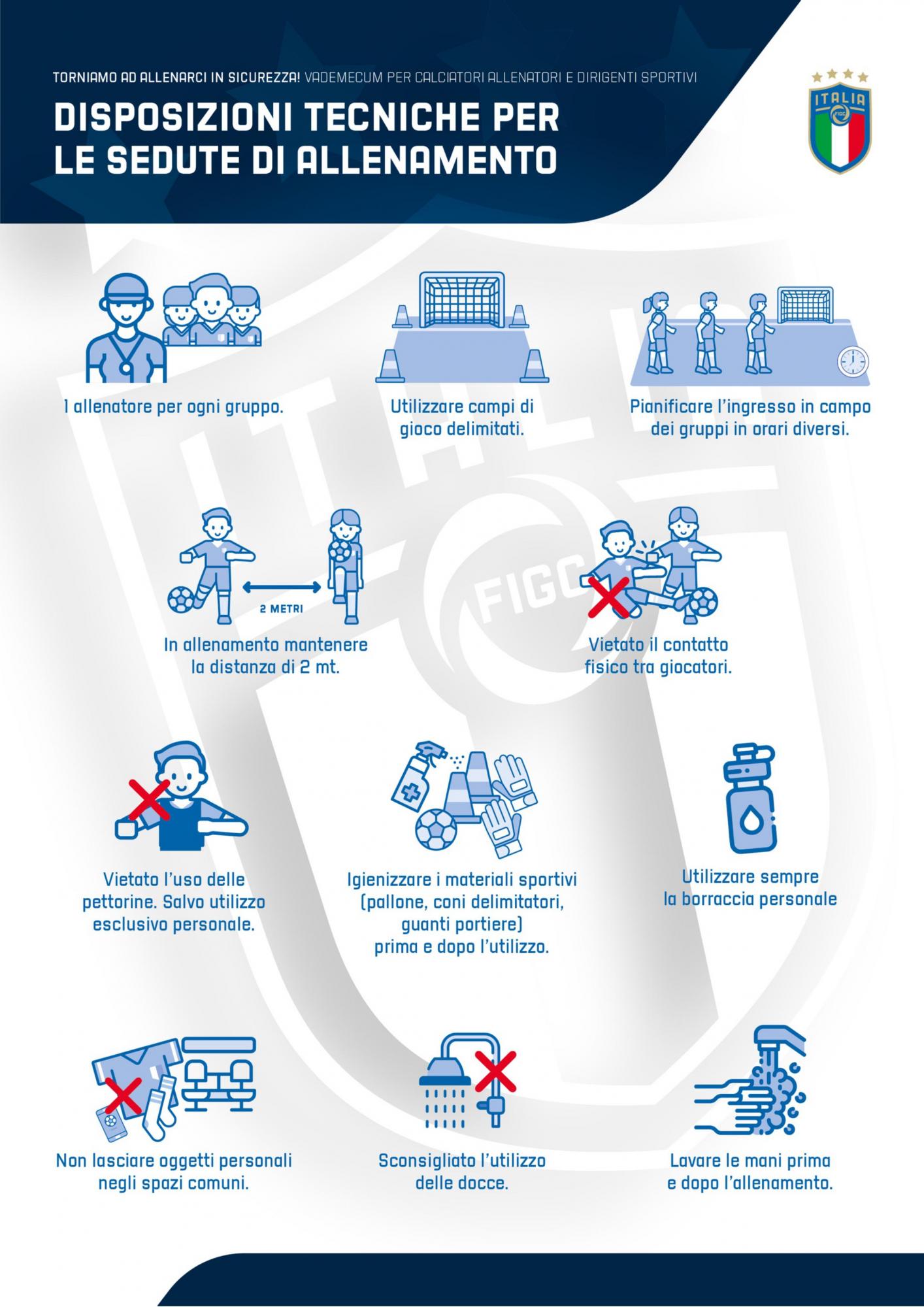 Fa molto discutere il protocollo governativo che le società dovranno seguire per la ripresa dell'attività calcistica giovanile e dilettantistica. Ben 30 pagine, che trovate in allegato, che sembrano pensate per affossare il movimento. Ricordiamo alcune norme: allenamenti che dovranno essere svolti con una fase di preallenamento individuale con i giocatori a due metri l’uno dall’altro, ogni gruppo dovrà avere un allenatore e muoversi in una sezione ben delimitata del campo  i calciatori non potranno utilizzare le pettorine.