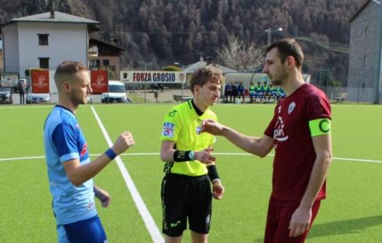 In Eccellenza il Sondrio, dopo la sconfitta interna contro la Trevigliese, rialza la testa, vince a San Pellegrino 3-1 e nel risultato c’è anche la firma di Riccardo D’Alpaos (14-3-2006), uno dei pochissimi valtellinesi in rosa.