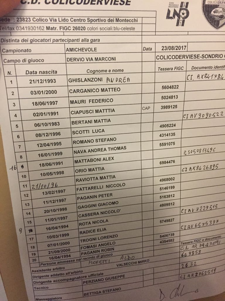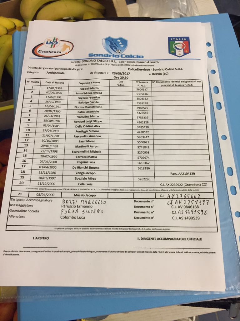 La quarta amichevole stagionale si chiude con un largo successo per il Sondrio. A Dervio, i biancoazzurri hanno battuto la ColicoDerviese, formazione di Promozione, con un netto 7-0. La prima rete porta la firma di Della Cristina, poi raddoppio su rigore di Valtulina, 3-0 firmato da Fascendini e prima del riposo ancora Della Cristina per il 4-0. Nella ripresa seconda rete personale di Valtulina e 6-0 siglato su rigore da Zenga. Nel finale la rete di Speziale su punizione per il definitivo 7-0. Sabato pomeriggio l'ultima amichevole del precampionato a Gravedona contro il Menaggio.