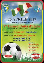 I Giovanissimi nazionali di Torino, Como, Renate e ColicoDerviese saranno i protagonisti domani della settima edizione del "Torneo Unità d'Italia". Una rassegna di calcio giovanile riservata a ragazzi che nel giro di pochissime stagioni potremmo veder giocare in prima squadra. Una competizione di alto livello, organizzata dalla ColicoDerviese, che si svolgerà presso il centro sportivo di Dervio. Un quadrangolare che prevede al mattino le due semifinali e nel pomeriggio le finali. Alle 10 la sfida tra Como, vincitore nel 2016 con il valchiavennasco Alberto Del Grosso tra i protagonisti del successo, e i padroni di casa della ColicoDerviese, alle 11 si affronteranno Torino e Renate. Alle 14,30 il match per il terzo posto e a seguire la finalissima. Nelle ultime tre edizioni a farla da padrone è sempre stato il Como, mentre in precedenza hanno scritto il loro nome nell'albo d'oro Monza, Varese e Milan.