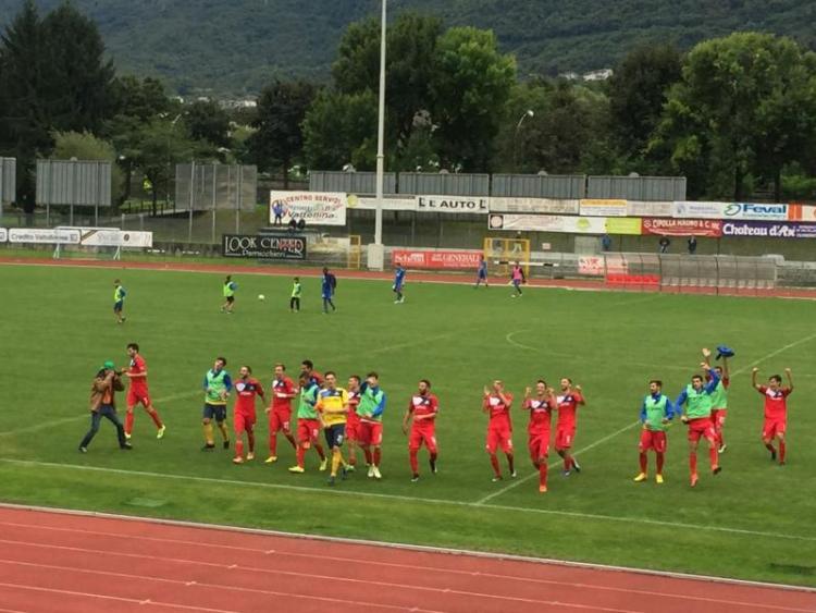 L'esultanza dei giocatori del Sondrio per la vittoria sul Caprino