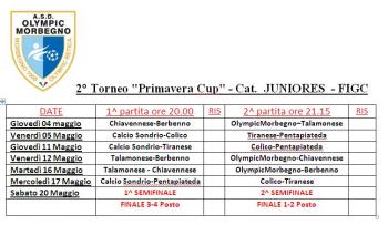 Riprenderà tra poche ore il torneo di calcio "Primavera Cup" riservato alle formazioni juniores. A Dazio è in calendario la terza serata a partire dalle 20. La prima delle due sfide serali metterà di fronte Sondrio e Tiranese. Entrambe vittoriose all'esordio si giocano la supremazia nel girone con la squadra del capoluogo favorita. Alle 21,15 ColicoDerviese e Penta Piateda andranno in cerca di riscatto dopo le sconfitte della scorsa settimana. La classifica del girone vede Tiranese e Sondrio a 3 punti, con gli abduani al comando per la miglior differenza reti, ColicoDerviese e Penta Piateda ferme a 0.