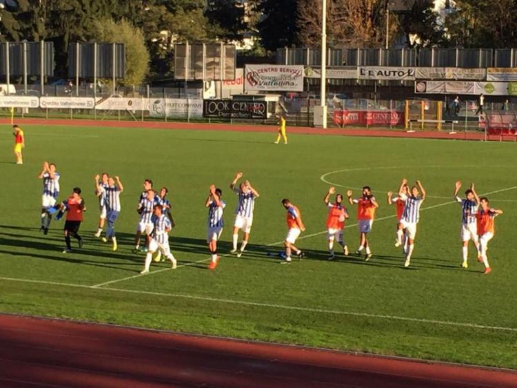 L'esultanza dei giocatori del Sondrio dopo il 2-0 dell'andata
