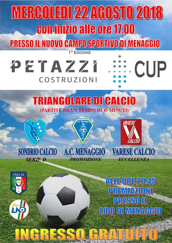 Il Sondrio sarà impegnato questa sera nell'ultimo test amichevole prima del debutto in Coppa italia previsto domenica alla Castellina contro il Lecco, fischio d'inizio alle 16. La squadra di Omar Nordi prenderà parte a Menaggio alla "Petazzi Cup", triangolare con partite di 45 minuti contro Menaggio (Promozione) e Varese (Eccellenza). Dopo le sfide "comode" con Sondalo e Grosio e quella iniziale con l'Olginatese si tratta dell'occasione per verificare i progressi della squadra a 4 giorni dal primo match ufficiale e a meno di due settimane dal debutto in campionato. Il tecnico dovrebbe avere a disposizione per l'appuntamento odierno tutta la rosa. Il Sondrio avrà il compito di aprire il triangolare affrontando alle 17 il Varese. Il torneo proseguirà con la sfida delle 18 tra il Menaggio e la perdente del primo match e si concluderà alle 19 con i padroni di casa ancora protagonisti contro la vincente di gara 1. Alle 20,45 presso il Lido di Menaggio si terranno le premiazioni.
