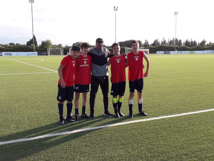 Togni (al centro) con i 4 ragazzi visionati dal Cagliari