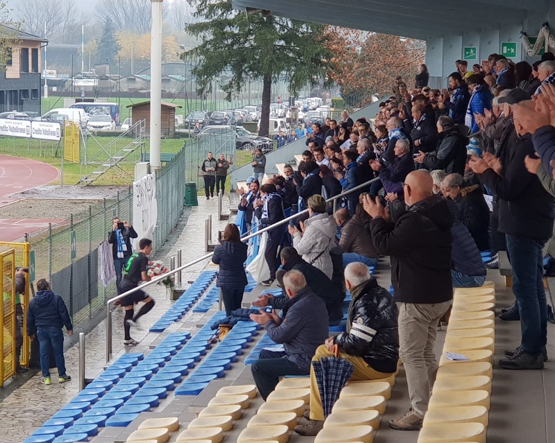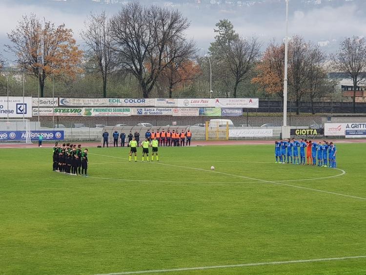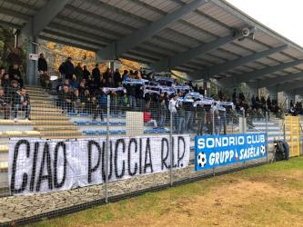 Dopo Caravaggio e Inveruno il Sondrio batte anche il Ponte San Pietro e sale a quota 25 punti. La sfida della Castellina è decisa dal solito Alessandro De Respinis, al 12° centro stagionale. Un successo prezioso, quanto sofferto, giunto al termine di una partita difficile. Nei primi 45 minuti il Sondrio fatica a sviluppare gioco e si fanno preferire nel complesso i bergamaschi. La prima occasione però è per i locali al 4°, cross da sinistra, testa di Fognini con palla fuori di poco sul palo lontano. Al 16° pericolosissimi gli ospiti, traversone dalla destra di Capelli per Pedrocchi che impegna Guerci sul primo palo. Al 40° due uscite di Guerci a sventare altrettante minacce. Al primo della ripresa imbucata centrale per Capelli che solo davanti a Guerci si fa ipnotizzare dal portiere che con tuffo sulla sinistra evita un gol già fatto. All'8° rigore per il Sondrio per fallo su D'Amuri, dal dischetto De Respinis toglie le ragnatelle dal "sette" alla sinistra del portiere. Al 45° Guerci sventa una velenosa punizione di Ferreira Pinto distendendosi sul secondo palo. La partita è stata preceduta da un minuto di silenzio e dal saluto a Enrico Puccia ricordato dai suoi compagni del Grupp Sasèla con cori e uno striscione. Il capitano del Sondrio Cesare Ambrosini ha portato sugli spalti un mazzo di fiori consegnandoli a Sara, moglie da pochi mesi del compianto Enrico.