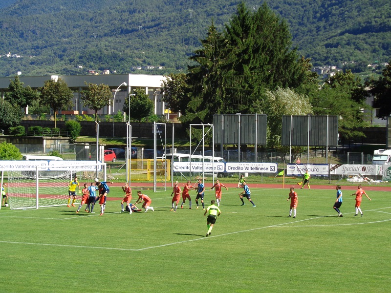 C'era grande attesa per il debutto stagionale del Sondrio in una partita ufficiale. Attesa ancora maggiore considerando che nel turno preliminare di Coppa Italia serie D i biancoazzurri dovevano vedersela con il Lecco. La prima in panchina di Omar Nordi vede una squadra profondamente rinnovata con solo 5 giocatori in rosa nella passata stagione in campo dal primo minuto, Lassi, Fognini, Cannataro, Di Cesare, Ronzoni. Il Lecco alla fine si dimostra superiore, il Sondrio avrà modo e tempo di crescere prima dell'esordio in campionato il 16 settembre. Il primo tempo si chiude con il Lecco avanti 3-1 grazie alle reti di Capogna al 22', Segato al 27' e Silvestro al 33'. Per il Sondrio il gol del momentaneo pareggio firmato da De Respinis su rigore al 25'. Nella ripresa il risultato non cambia e la sfida si chiude sul 3-1 per i lecchesi. Buon pubblico con una numerosa e rumorosa presenza di tifosi lecchesi.