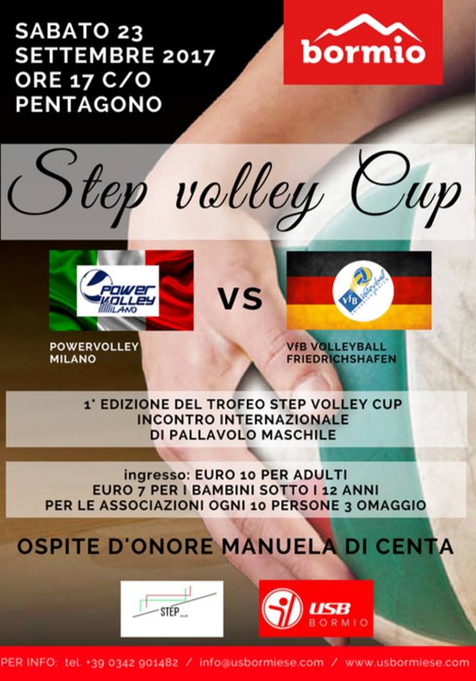Spettacolo garantito domani a Bormio con la "Step Volley Cup", la sfida tra il "Revivre" Powervolley Milano e la Vfb Volleyball Friedrichshafen. Da una parte la formazione della serie A1 italiana guidata dal campionissimo Andrea Giani, dall'altra i pluricampioni di Germania e già vincitori della European Champions League. Un evento organizzato da Step Asd e Unione Sportiva Bormiese che gli appassionati della pallavolo non possono lasciarsi sfuggire quello che andrà in scena alle 17 al Pentagono. Le due squadre sono in ritiro a Bormio da ieri ed hanno già svolto alcuni allenamenti. Ospite d'onore della manifestazione Manuela Di Centa, due volte medaglia d'oro olimpica nello sci di fondo e vincitrice di due Coppe del Mondo oltre a numerose medaglie.