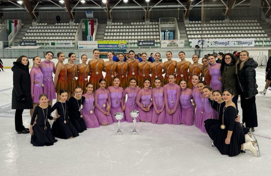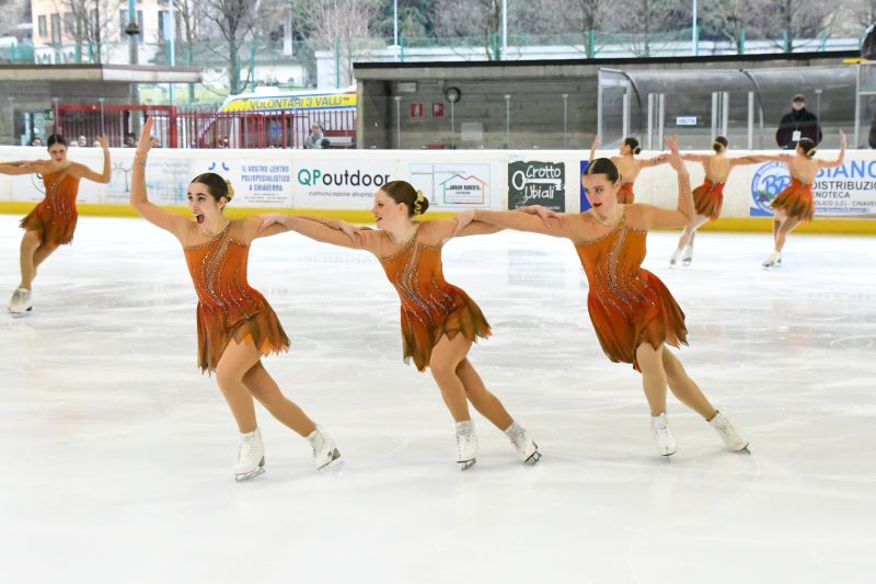 Dal 1 luglio 2023 la US Chiavennese Polisportiva di Chiavenna ha una nuova sezione, il Pattinaggio di figura su ghiaccio con la squadra di pattinaggio sincronizzato “Ice Diamonds”. Una delle prime squadre a praticare la disciplina in Italia, proveniente dalla ASD Pattinaggio di Figura Chiavenna fondata 30 anni fa, che nella scorsa stagione ha deciso di consolidare la preziosa collaborazione con la Polisportiva entrandone a farne parte definitivamente, portando con sé un bagaglio di esperienza sportiva e amministrativa che si è ben amalgamato da subito. Ne sono prova i successi della stagione sportiva che si è appena conclusa, nonché l’organizzazione di una gara nazionale di pattinaggio sincronizzato dello scorso febbraio che, grazie alla collaborazione delle altre sezioni della Polisportiva, ha permesso di ospitare oltre 1000 atlete provenienti da tutta Italia in un’intensa e appassionante giornata di sport. La sezione, diretta da Daniele Radaelli già presidente della ASD Pattinaggio di figura Chiavenna, ha in organico un team di allenatrici e istruttrici locali, tra cui Vittoria Fallini, Chiara Copes e Adele Masolini a capo delle squadre agonistiche, sotto la supervisione della head coach Michela Zini di Milano. L’organizzazione è affidata alla team manager Rossella Ciuchi di Chiavenna. Le Ice Diamonds sono attualmente suddivise in quattro squadre, tre agoniste e una preagonistica, per un totale di circa 70 atlete di età compresa tra i 6 e i 18 anni. Le squadre maggiori che gareggiano nelle categorie Mixed Age e Basic Novice sono di livello nazionale e internazionale, nella categoria Pre Juvenile le atlete si allenano per un futuro passaggio all’agonismo dando prova delle loro capacità sul ghiaccio in occasione di eventi non competitivi, mentre nella sezione Pre Agonistica si imparano le basi del pattinaggio sincronizzato. La stagione sportiva del pattinaggio sincronizzato è fondata principalmente su quattro gare nazionali, i campionati italiani assoluti e giovanili di pattinaggio di figura e una serie di trofei internazionali, incluso il Campionato del Mondo appena svoltosi a Zagabria (Croazia) a cui partecipa la formazione campione d’Italia in rappresentanza della nostra Nazione. Il palmares delle Ice Diamonds per questa stagione è ricco di successi, con un oro e due argenti per le Mixed Age nelle gare nazionali e un oro e un argento per le Basic Novice. Grandi soddisfazioni anche le gare internazionali, con un argento per le Mixed Age nella difficile Lumiere Cup di Eindhoven (Paesi Bassi) in competizione con le forti squadre nordeuropee e un oro per le Basic Novice a Huttwil (Svizzera). Gran finale con i Campionati Italiani giovanili di Trento, dove le Basic Novice si sono piazzate al secondo posto con il titolo di vicecampionesse d’Italia. La stagione agonistica è ormai conclusa, ma gli allenamenti proseguono al Centro Polisportivo di Chiavenna con allenamenti sui pattini a rotelle “inline”, preparazione atletica e danza per tutte le formazioni e con la programmazione tre trasferte all’Acinque Ice Arena di Varese per non perdere confidenza con il ghiaccio, in attesa delle due settimane di ritiro estivo tra luglio e agosto per la preparazione della stagione sportiva 2024/25.