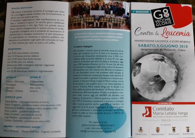 Da Nicola Aloisio a Marco Bettiga, da Enzo Tognini a Giordano Bruseghini, da Erio Bolandrini a Vittorio Franchetti, da Marziano Poncetta a Michele Spaggiari, da Alfio Gianoli a Gianni Raschetti, è lunghissima la lista dei giocatori che hanno fatto la storia del calcio locale e che sono annunciati tra i protagonisti della prima edizione del "G8 Vecchie Glorie". Un torneo che avrà come direttore di gara d'eccezione Fabio Baldas, ex arbitro con 116 partite dirette in serie A, 30 a livello internazionale, un match ai Mondiali del 1994 e l'addio al calcio di Franco Baresi. Al fianco di Baldas opereranno Dino Lodolo, Fabio Conzutti e Luigi Medeot, ex guardalinee di serie A. A richiamare tanti grandi giocatori del passato, arbitri di questo livello e riunirli in un campo da calcio è la passione per questo sport e la volontà di fare del bene. Il torneo e gli eventi collegati, cena con delitto, lotteria e spettacolo dei Legnonesi, permetteranno di raccogliere fondi da devolvere al Comitato Maria Letizia Verga. L'appuntamento è a Colico a partire dalle 9,30 per una giornata di grande calcio con giocatori che hanno caratterizzato il movimento calcistico dagli anni 80 in poi. Nel pomeriggio il clou con i quarti di finale e le finali. Atteso nel corso della giornata il portiere dell'Inter e valtellinese doc Daniele Padelli.